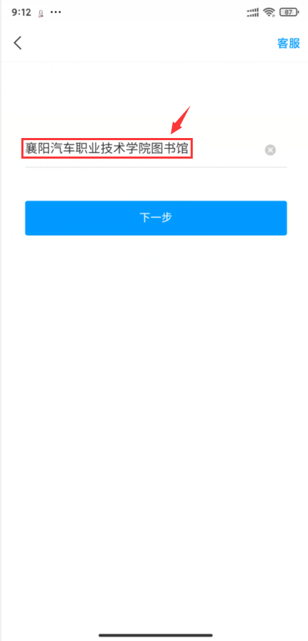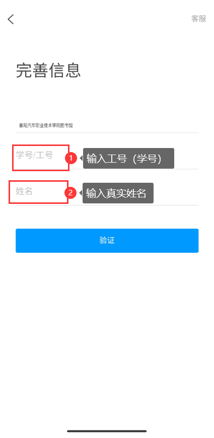 4.输入“襄阳汽车职业技术学院图书馆” 5.输入工号以及真实姓名