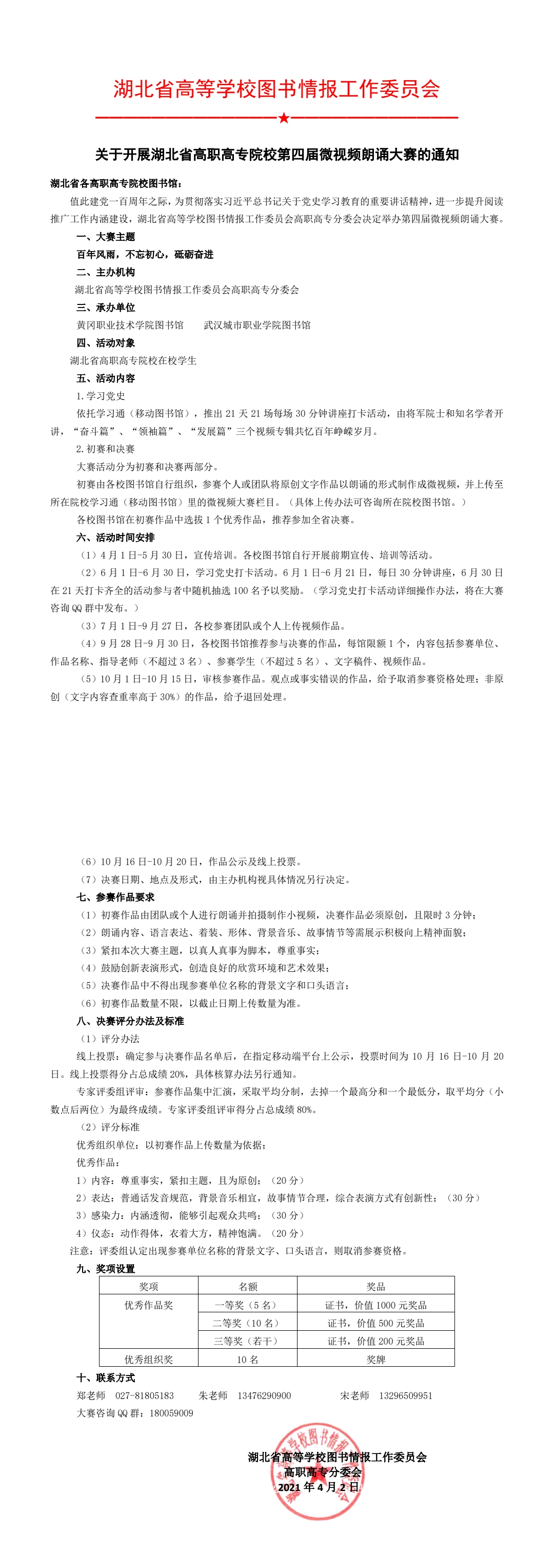 关于开展湖北省高职高专院校第四届微视频朗诵大赛的通知
