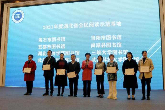 中国图书馆学会阅读推广展示项目1个,为华中农业大学图书馆大型文学艺术与情景式文献展《红岩》。全民阅读示范基地8个,分别是:黄石市图书馆、当阳市图书馆、宜都市图书馆、南漳县图书馆、湖北经济学院图书馆、三峡大学图书馆、武昌首义学院图书馆、武汉科技大学图书馆。