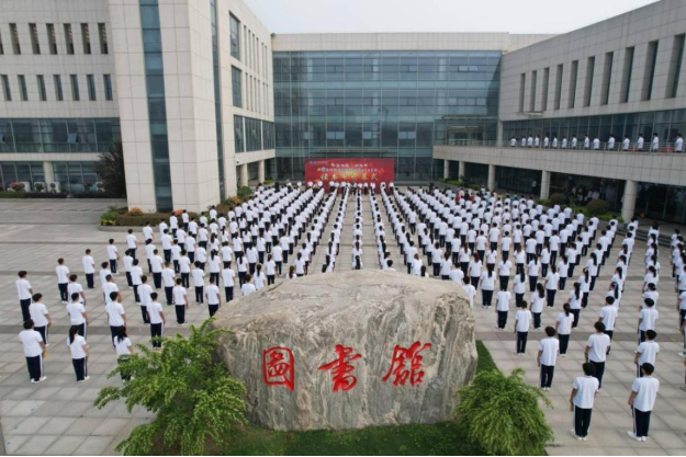 紧接着读者协会指导教师程阳和读者协会会长吕敏进行读书倡议发言。五位校领导、二级学院及相关科室负责人、600多名学生代表齐诵《大学》和《少年中国说》。