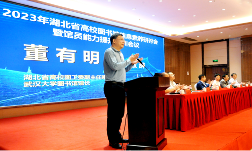 (湖北省高校图工委副主任兼秘书长、武汉大学图书馆馆长董有明致辞)