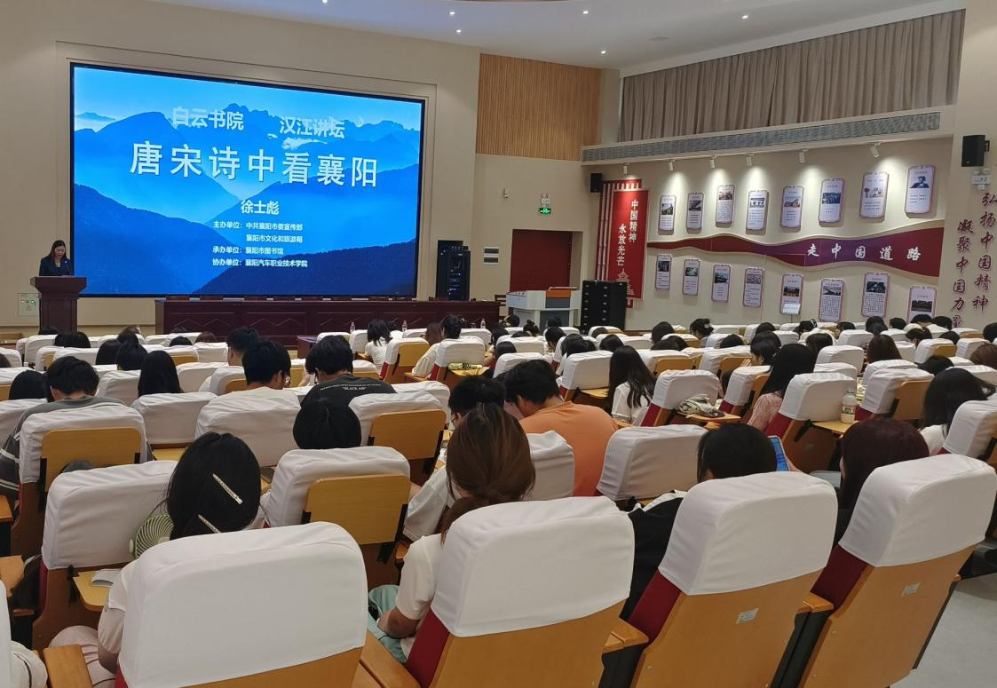(通讯员:汤凌云)2024年6月6日下午,由中共襄阳市委宣传部、襄阳市文化和旅游局主办,襄阳市图书馆和我校图书馆联合承办的——白云书院 汉江讲坛“唐宋诗中看襄阳”讲座在我校6号教学楼一楼思政教研基地成功举办。讲座由图书馆副馆长陈志华主持,襄阳市图书馆采编部主任吴楠、校图书馆馆长林先军和交管学院160多名师生参加了此次活动。