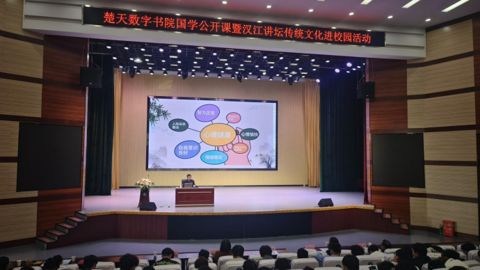 (通讯员:汤凌云)2024年11月21日下午,由湖北省图书馆主办、襄阳市图书馆和襄阳汽车职业技术学院承办、襄阳市图书馆学会协办的“楚天数字书院国学公开课暨白云书院 汉江讲坛——传统文化进校园”活动在襄阳汽车职业技术学院科学会堂开展。出席此次活动的有湖北大学哲学学院教授、博士生导师徐瑾,襄阳市图书馆党总支书记、馆长郝伶俐,学校党委委员、副校长王晓红,湖北省图书馆副研究馆员周伟,襄阳市图书馆党总支委员、副馆长曹禹,我校图书馆馆长邹颖和部分师生代表共计500多人参加了此次活动。活动由图书馆副馆长陈志华教授主持。