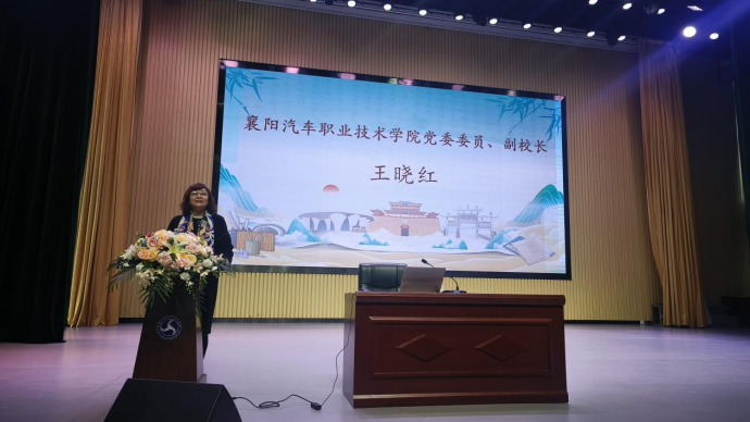 接着我校党委委员、副校长王晓红致辞。王校长站在教育专家的高度,充分阐释了传统文化与心理健康教育的紧密联系,展现了襄阳汽车职业技术学院在创新教育模式、推动传统文化进校园方面的深远思考和实际行动,表达了我校努力培养德技并修技术技能人才的担当和决心。