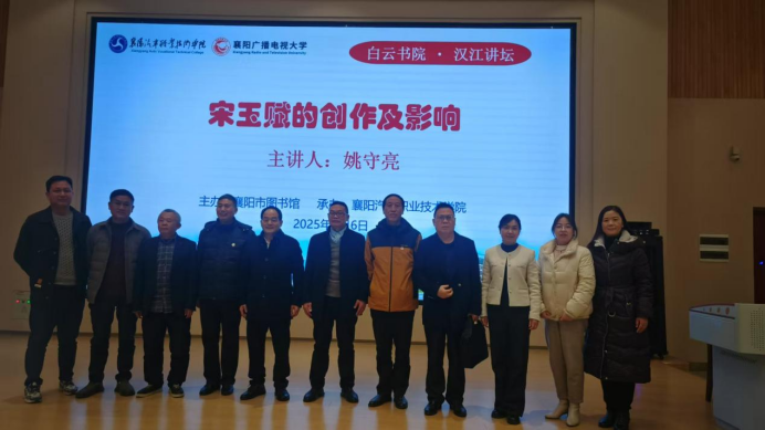 (通讯员:汤凌云)2025 年3月6 日下午,由我校图书馆和襄阳市图书馆联合承办的“白云书院 · 汉江讲坛——宋玉赋的创作及影响”讲座活动在思政教研基地成功举办。市荆楚文化协会主席、原襄阳市政协副主席曾玉平等一行10余位领导和学院160多名师生代表参加了此次活动。讲座由图书馆馆长邹颖主持。