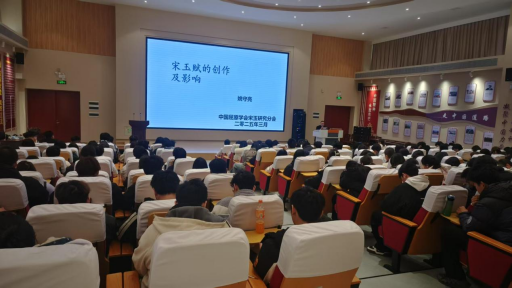 本次活动由宜城市板桥店镇中心学校语文正高级教师中国屈原学会宋玉研究分会副秘书长姚守亮主讲。通过姚老师的精彩讲座,让大家对宋玉赋的创作背景、艺术特色以及历史影响有了更为深入的了解。同学们仿佛穿越时空,与宋玉进行了一次心灵的对话,感受到了古代文学的博大精深和文化传承的力量。