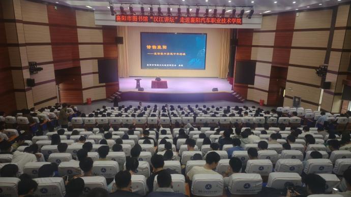 (通讯员:汤凌云)秋意正浓,书香与古韵交织。9月25日下午,由中共襄阳市委宣传部、襄阳市文化和旅游局主办,襄阳市图书馆承办的“白云书院 汉江讲坛”讲座活动在襄阳汽车职业技术学院科学会堂圆满举行。本次讲座由襄阳汽车职业技术学院图书馆副馆长陈志华主持,学校党委委员副校长王晓红、襄阳市图书馆吴楠、建筑工程学院书记李勇和建筑工程学院的500多名师生参加活动。