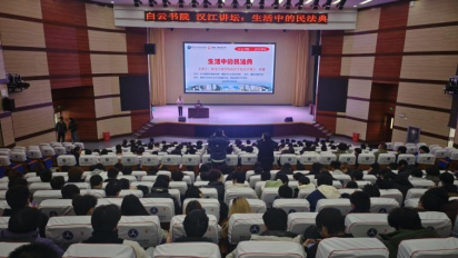 (通讯员:汤凌云)2025年12月4日,由中共襄阳市委宣传部、襄阳市文化和旅游局主办,襄阳市图书馆承办的“白云书院 汉江讲坛”系列讲座活动在我校科学会堂成功举办,本次讲座由我校图书馆携手智能网联汽车学院共同协办,以“生活中的民法典”为主题,约500余名师生参加。活动由图书馆馆长邹颖主持。